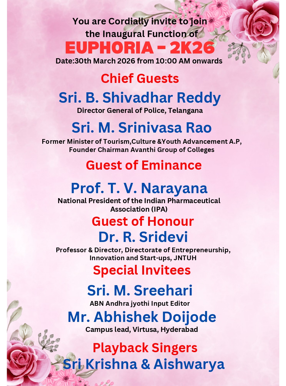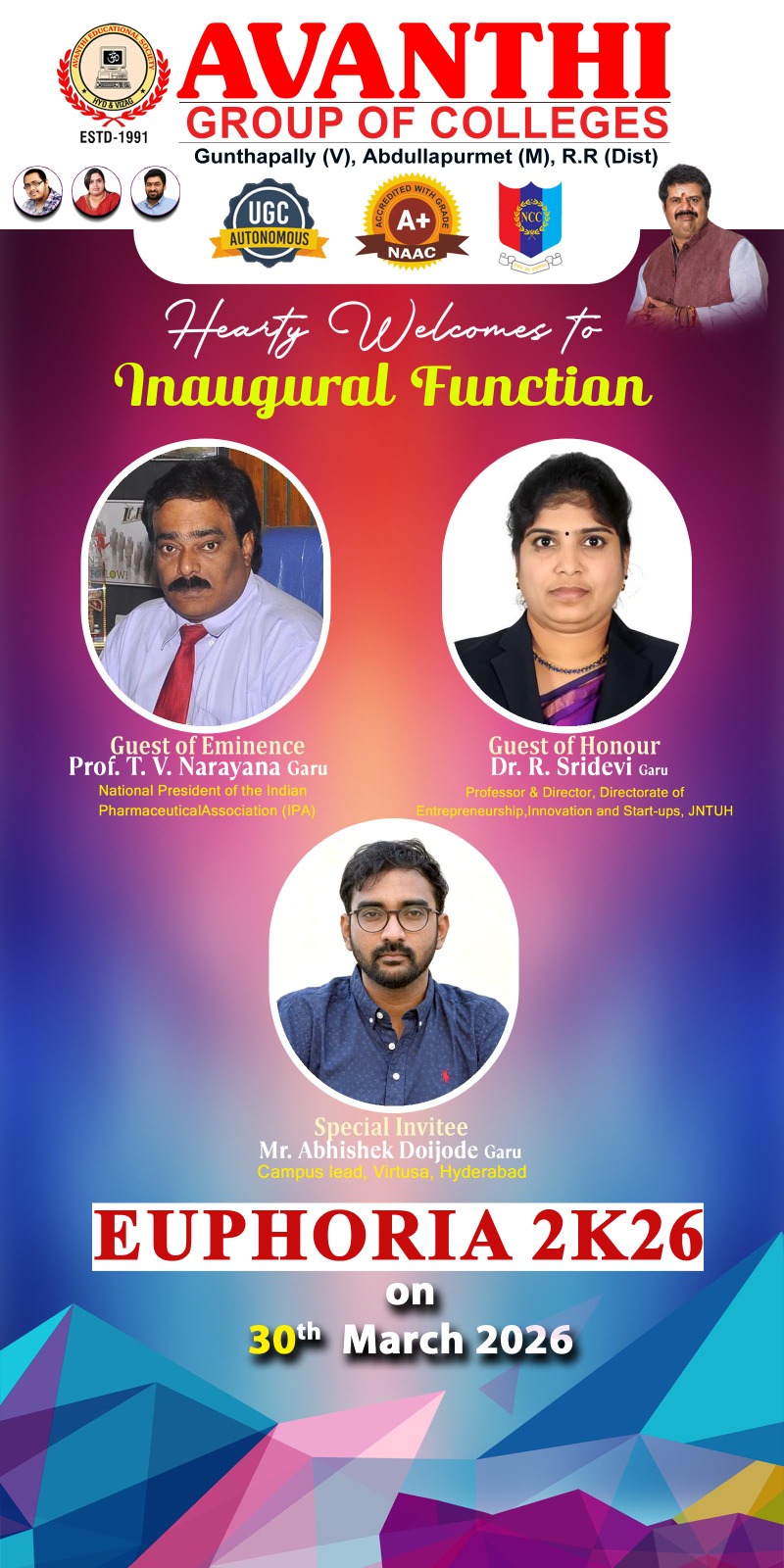 Our institution of higher learning is using cutting-edge techniques to deliver high-quality instruction, guided by knowledgeable and experienced faculty members. Avanthi is devoted to help students develop their "core competence," "communication skills," and "ethical balance of mind" in order to make them highly sought-after technocrats who would greatly advance the development of such a knowledge-based society in our nation. This is made possible by our esteemed staff and management. I wish for the student's good future and wish them much-deserved success.