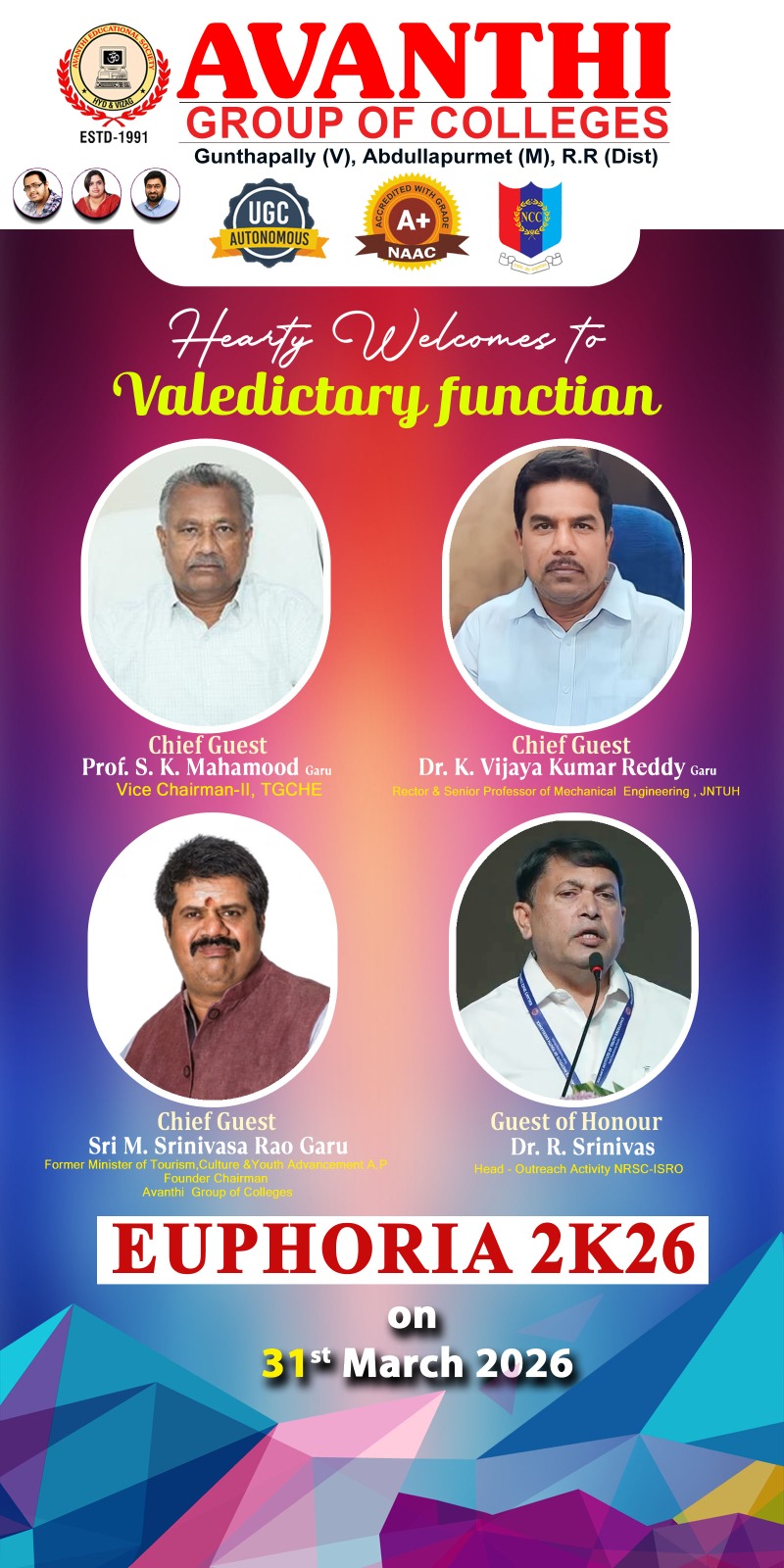 Our institution of higher learning is using cutting-edge techniques to deliver high-quality instruction, guided by knowledgeable and experienced faculty members. Avanthi is devoted to help students develop their "core competence," "communication skills," and "ethical balance of mind" in order to make them highly sought-after technocrats who would greatly advance the development of such a knowledge-based society in our nation. This is made possible by our esteemed staff and management. I wish for the student's good future and wish them much-deserved success.